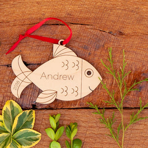 Christmas Ornament - Fish (Personalized, Wood)